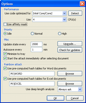 << Click to Display Table of Contents >> Navigation: Password Recovery Programs > Advanced Office Password Breaker > Working with AOPB > Options |