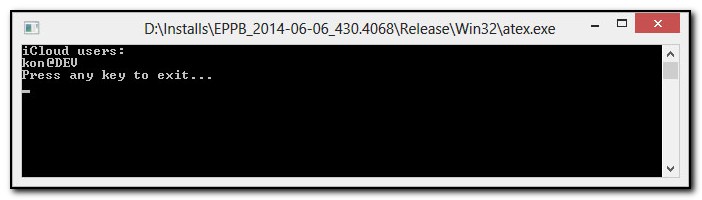 1.Launch atex.exe. The file "icloud_token_<timestamp>.txt" will be created in the directory from which atex.exe was launched (or in the C:\Users\<user name>\AppData\Local\Temp folder, if you don't have enough permissions for writing files to the folder where atex.exe was launched from).